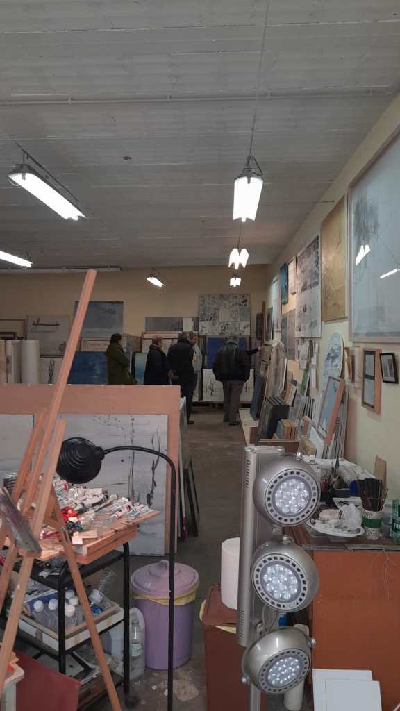 Persones d’aquí i d’allà, col·legues i amics, tots atents a la proposta de la Berdalet; Han omplert el seu taller, amb poca estona. La Marina ve de presentar la seva obra més recent –olis amb vermells-, a Monistrol de Calders (veure post a Salonet). I té encara en marxa una exposició individual, a la galeria Artemisia de Corró d’Avall.