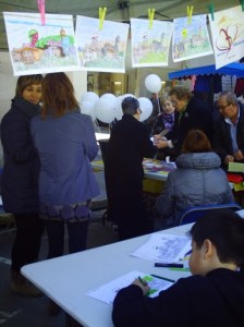 Al carrer, alumnes pintaven el dibuix fet