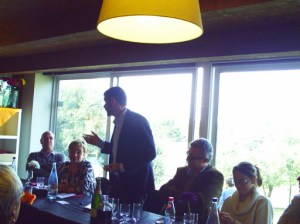 Centelles. Ahir diumenge va venir a la nostra vila el conseller de territori i sostenibilitat, Santi Vila. En un dinar-tertúlia a les Brases, qui hi va anar, va tenir l’ocasió de conèixer i preguntar-li de primera mà el seu pla d’actuacions pel tema dels transports i les infraestructuras, tema de la trobada. De tarannà amable, paraula estudiada i estil jove i professional –no en va, ha estat professor a la universitat-, va desgranar les raons per les quals l’actuació de la seva consellaria s’ha de fixar en reptes prioritaris, donat l’escassetat de recursos i l’endeutament públic. Hi ha previstes actuacions puntuals al llarg de la línia de tren de Barcelona-Vic, per tal de facilitar el creuament de combois cada cinc o set quílometres i millorar el sistema. Però de moment no es plantegen començar el desdoblement definitiu de la línia, qüestió que es ve reclamant des del territori, des de fa molts anys. Alcaldes de la zona, com el d’Aiguafreda, Grub, Tona i Balenyà, així com la cap del grup centellenc de CIU, van poder confirmar així que les intervencions previstes van més en la línia de millorar el qué es té, si bé les intervencions de petits desdoblaments a Montmaló, La Garriga, Balenyà i Taradell ja van cap a la direcció dels quatre rails. Les paraules del conseller van ser: “heu de continuar reclamant el desdoblament”. Maribel Matas, també va demanar pel pont de ferro, la millora del servei a l’estació –tiquets, marquesines, etc-. Vila va comentar que tot depen una mica de la voluntat cooperativa amb el ministeri estatal, amb qui sembla que hi té bona sintonia. El conseller va parlar de que s’està estudiant subcontractar la gestió de les estacions a projectes nous de restauració, punts d’informació, etc., per tal de millor la conservació de les estacions, tal i com la Generalitat ja ha fet en la línia de tren de Lleida a la Poble de Segur. Però la Generalitat, per ara només és responsable d’una part del servei ferroviari de Rodalies i ha d’anar cercant solucions amb negociacions amb la ministra Ana Pastor.
