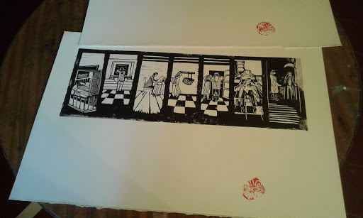 He utilitzat el linòleum que dona imatges contundents. Queda l’esquena molt allargada, però he decidit acceptar el resultat perquè funciona.