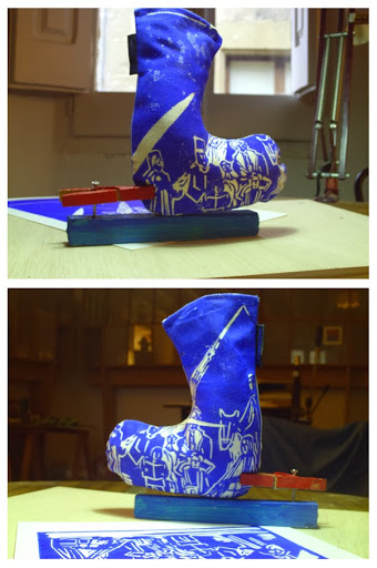 Un dels regals “invisibles” que he fet ha estat aquest mitjó, tonejat amb un linòleum. La peça de roba és una iniciativa de la parella artística alucinamandarinas, que ens ho ha fet arribar a un centenar d’artistes que hem volgut participar en la seva proposta de Xmassucks. Els diversos mitjons es poden veure a l’àlbum de Facebook del grup i en una web pròpia: xmassucks.net.