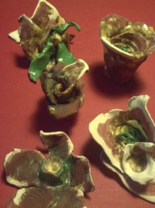 Ara estic fent proves i estampo planxes de linòleum sobre del fang. Això forma petits relleus als que dono color amb òxids o esmalts. Estic investigant.