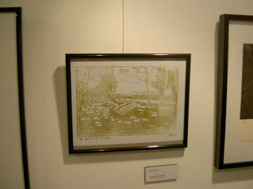 El bodegó que presento el vaig fer després de parlar amb un altre artista de Centelles, el pintor Joan Subirà i plantejar si seria possible amb el linòleum fer un bodegó tant ben fet com ell fa les seves pintures. El resultat és el que teniu a l’exposició. Estampat amb el baren, la taca de tinta queda més irregular i receptiva a reflexes lumínic.
