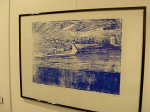 I tornem al dissabte 9 de juliol. L’exposició “Intersecció” tindrà una altra crònica al blog, de conjunt, com quan el torn a Bucaramanga. Sant Pere de Vilamajor tanca el cercle d’intercanvi. Hi participo amb unes estampes d’una sèrie dedicada a la Diada de Sant Jordi. Un treball bicolor -però només un fons blau i una planxa “dibuixada” amb vermell- que trobareu més ben explicat a l’article “Sant Jordi en tres estampes”, no molt avall dintre aquesta pàgina.